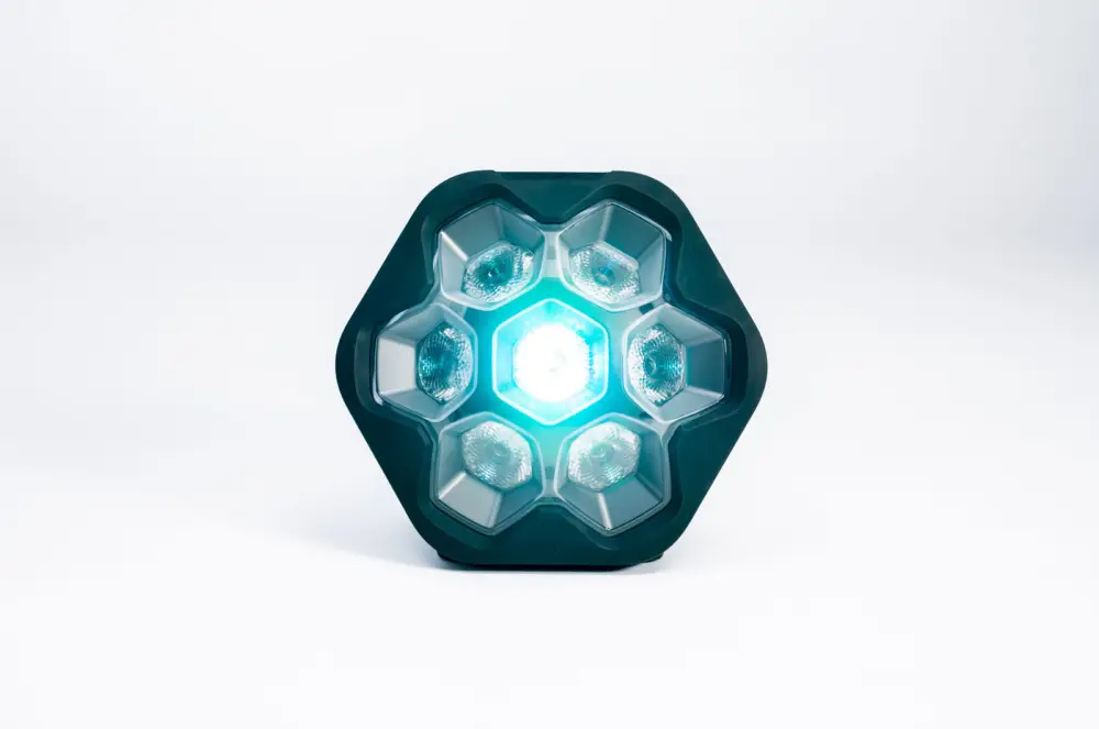 Ausgestattet mit 7 LED RGBW 12 W-Quellen erzeugt der LIGHTBOKS satte Farben und präzise Weißtöne mit fließenden Übergängen, gesteuert über die SOUNDBOKS-App. Die Audioerkennung des integrierten Mikrofons und der TrackSync-Algorithmus passen die Effekte an Kicks, Breaks und Steigerungen an – ganz ohne DMX. Wählen Sie 3 Intensitätsstufen (Chill, Dance, Rave) und 10 Paletten passend zur Stimmung. Die TeamUp-Funktion ermöglicht die Synchronisation mehrerer Einheiten für ein stimmiges Bühnenbild. Für den mobilen Einsatz konzipiert, ist das IP65-Gehäuse staub- und spritzwassergeschützt, während der wiederaufladbare Akku stundenlange Freiheit bei der Beleuchtung garantiert.